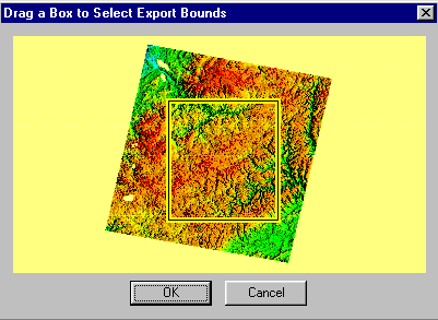 Draw BoxPressing the Draw Box... button brings up the Drag a Box to Select Export Bounds dialog. In this dialog, simply hold down the left mouse button and drag a rectangle around the area of the image that you wish to export. If you make a mistake, just drag another rectangle.