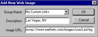 When you've completed entering information about the new web link, press the OK button to complete your entry and have it added to the web link tree in the Load Image From Web dialog.