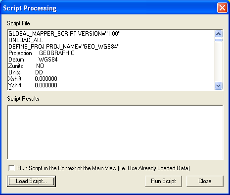 Note: Only registered users of Global Mapper are able to run Global Mapper script files.